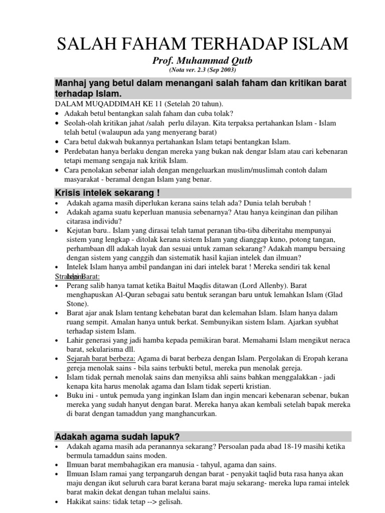 Nota Ringkas Salah Faham Terhadap Islam Pdf